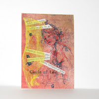 My first ATCs, Circle of Life & Reflection. Circle of Life, 2 1/2"X 3 1/2"; ink, newspaper and tissue on printed card stock. Reflection, 1/2"X 3 1/2"; ink and pencil on card stock.